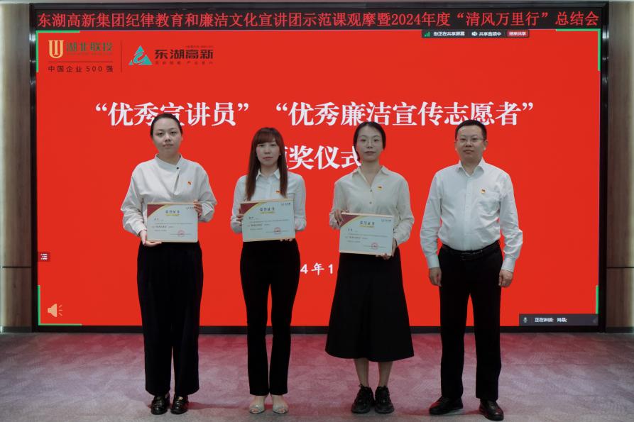 在2024年度“清風(fēng)萬里行”總結(jié)表彰環(huán)節(jié),會(huì)議宣讀了《關(guān)于表彰“優(yōu)秀宣講員”“優(yōu)秀廉潔宣傳志愿者”的決定》,并為“優(yōu)秀宣講員”獲獎(jiǎng)?wù)摺ⅰ皟?yōu)秀廉潔宣傳志愿者”獲獎(jiǎng)?wù)叽眍C發(fā)證書。
